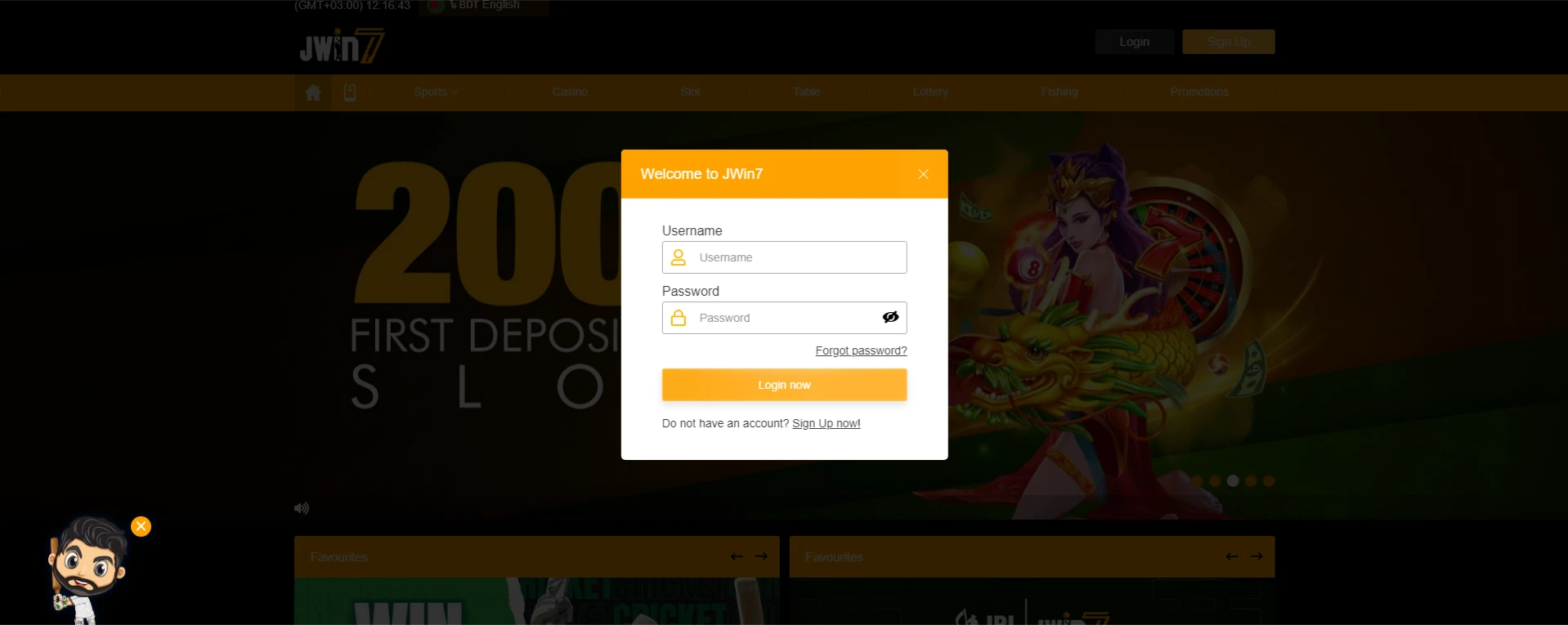 ডেস্কটপ বা মোবাইল সাইটের উপরের ডানদিকে, তুমি Jwin7 এ যোগদান এবং লগইন করার জন্য একটি বোতাম দেখতে পাবে। হলুদ “লগইন” বোতামে ক্লিক করলে, লগইন পৃষ্ঠা খুলে যাবে।